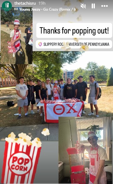 - 1:00 PM and onward โ Post-Game Festivities at our new Theta Chi Chapter House. Address: 115 Kiester Rd, Slippery Rock, PA 16057. Brothers will slowly be gathering back at the house after the tailgate as the day goes on. There is no definite cutoff time so please be sure to come back to the house! It is the big yellow house on the corner of Kiester and Main St. ***Please be aware, parking is very limited and the driveway will be filled with vehicles of the 7 brothers who live there. There is also no street parking so please be sure to park either in the Safety Building Lot or the lot in front of north hall. Both are located right across the street from the chapter house and are in very close walking distance.***